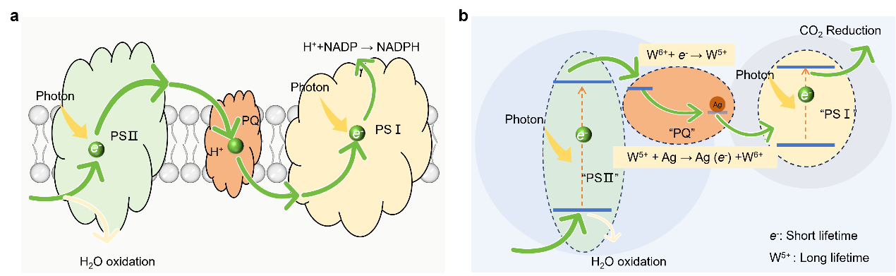 植物通过光合作用,巧妙地将结构简单的二氧化碳和水转化为复杂的养分分子,为人类借助化学手段实现温室气体二氧化碳的资源化利用提供了自然范例。然而,人工模拟光合作用的过程仍面临凯发k8挑战,其关键瓶颈在于:光激发功能材料所产生的电子(用于还原二氧化碳)与空穴(用于氧化水)寿命极短,难以实现二者反应的同步与持续进行。