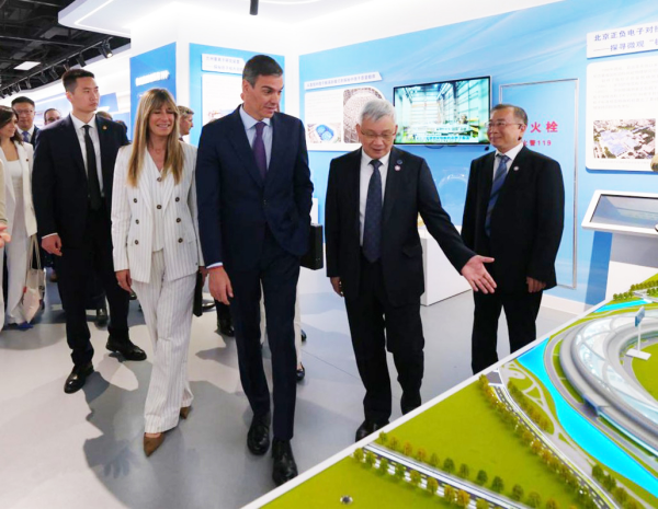 侯建国向佩德罗·桑切斯介绍国家重大科技基础设施高能同步辐射光源相关情况